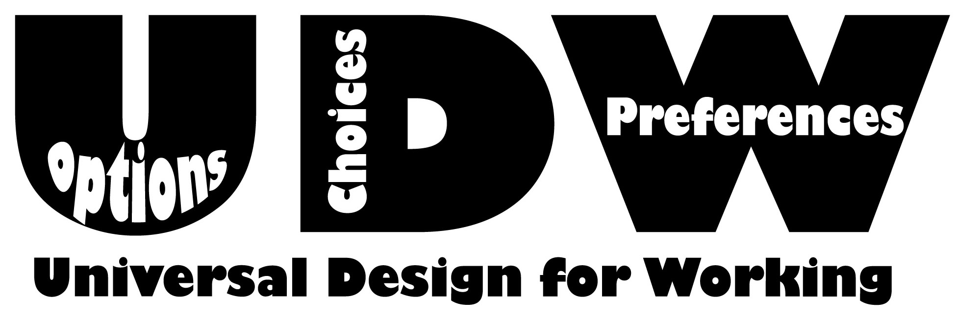 Universal Design for Working below the abbreviation UDW with the words options, choices and preference built in