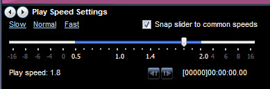 In Windows Media Player, version 11, open the file you want to watch. Click on the Now Playing tab, then Enhancements, and then Play Speed Settings to control the playback speed.